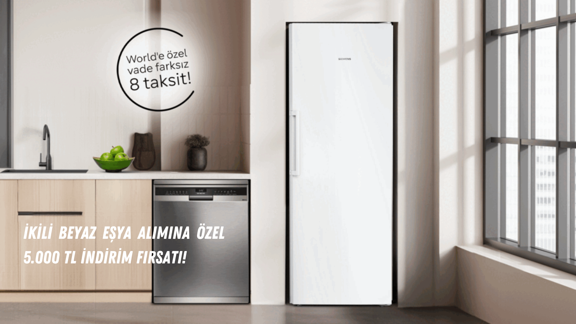 Ayrı ayrı güzel, birlikte mükemmel olan Siemens’in üstün teknolojisine sahip buzdolabı, kurutma, çamaşır ve bulaşık makinesi modellerinden 2’sini sepete ekle, 5.000 TL indirim fırsatını yakala!