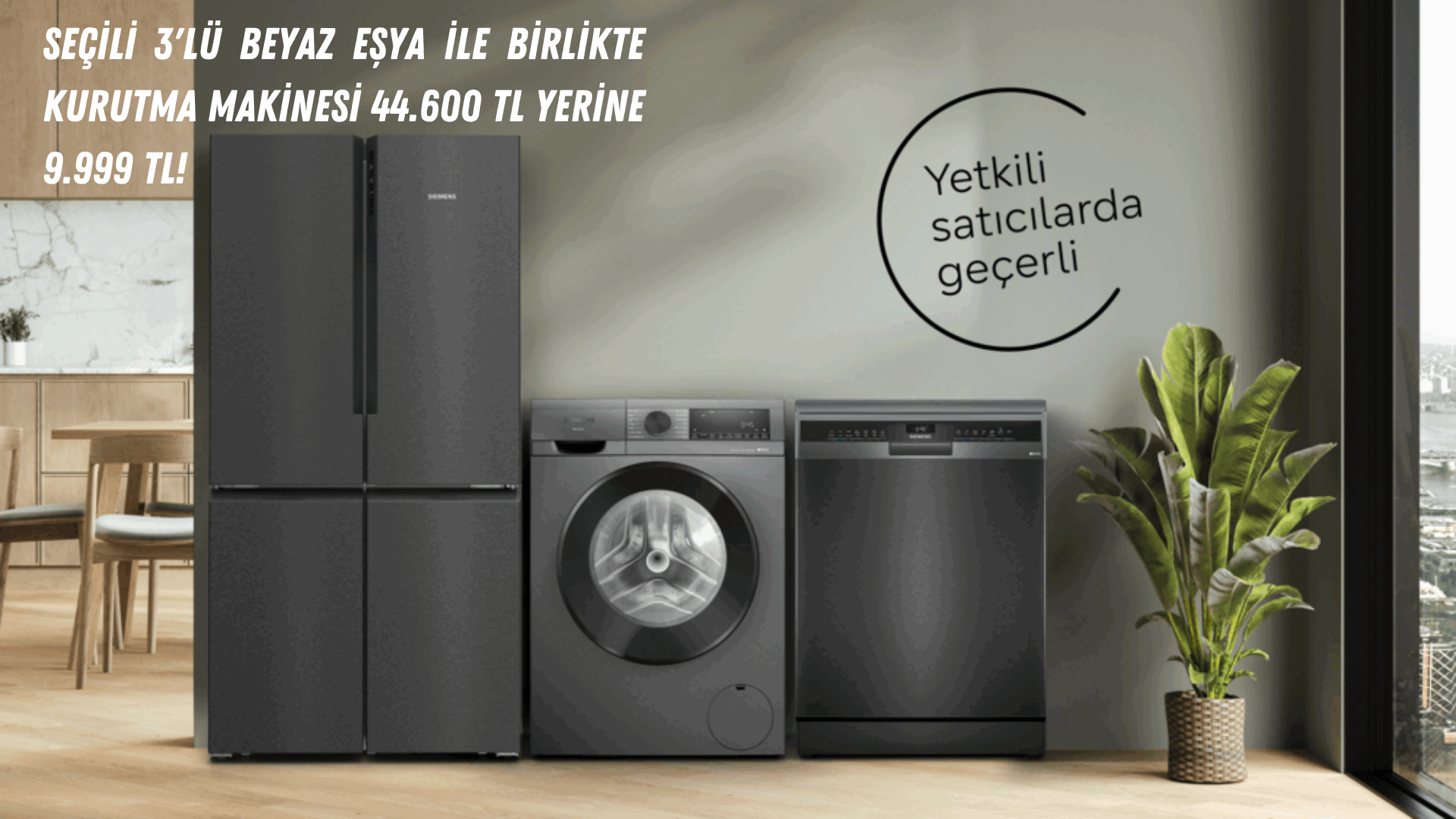 Mutfağınıza uyum sağlayan akıllı teknolojilerde indirim fırsatı! 30 Eylül'e kadar üçlü beyaz eşya alımınıza özel Siemens kurutma makinelerinde geçerli 15.000 TL indirim seni bekliyor.